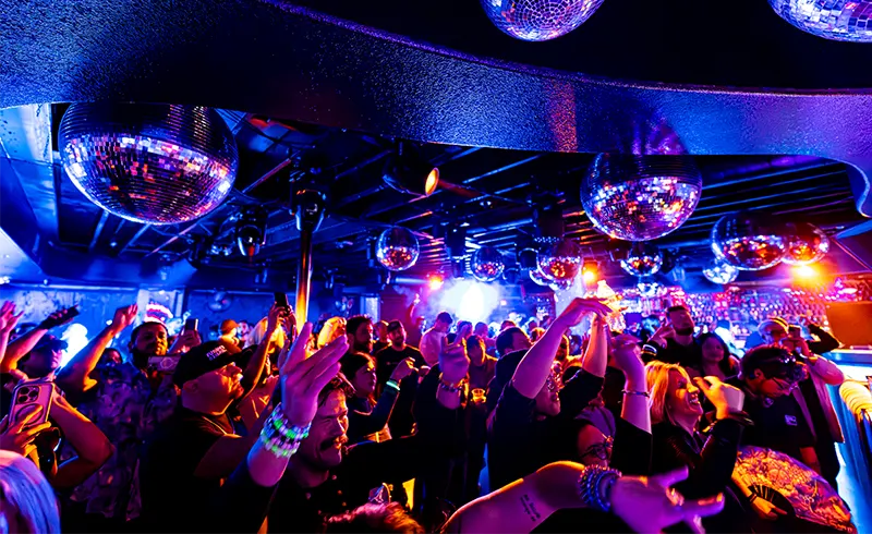 - High-energy EDM: Main stage Strip clubs